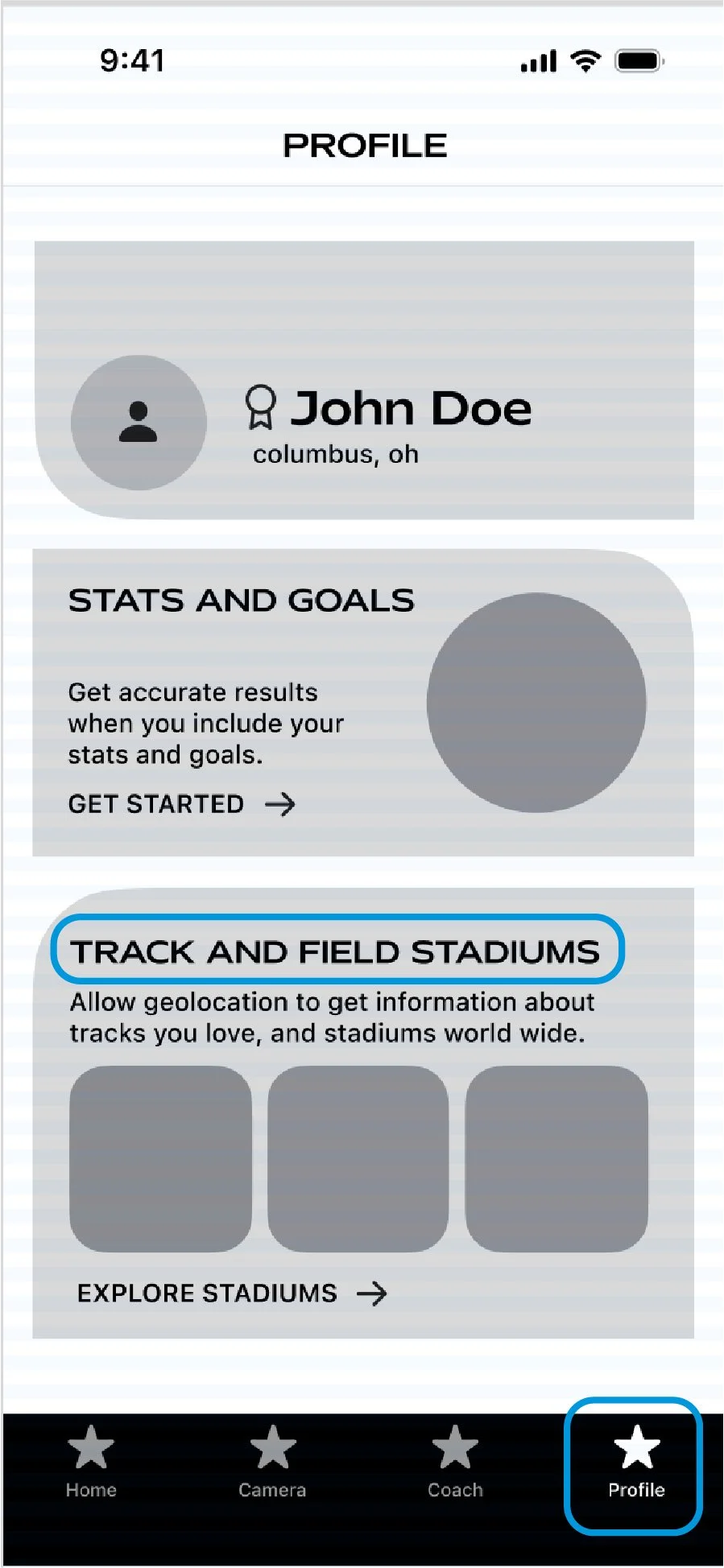 Navigate back to the profile landing page, and explore the Track and Field Stadiums section